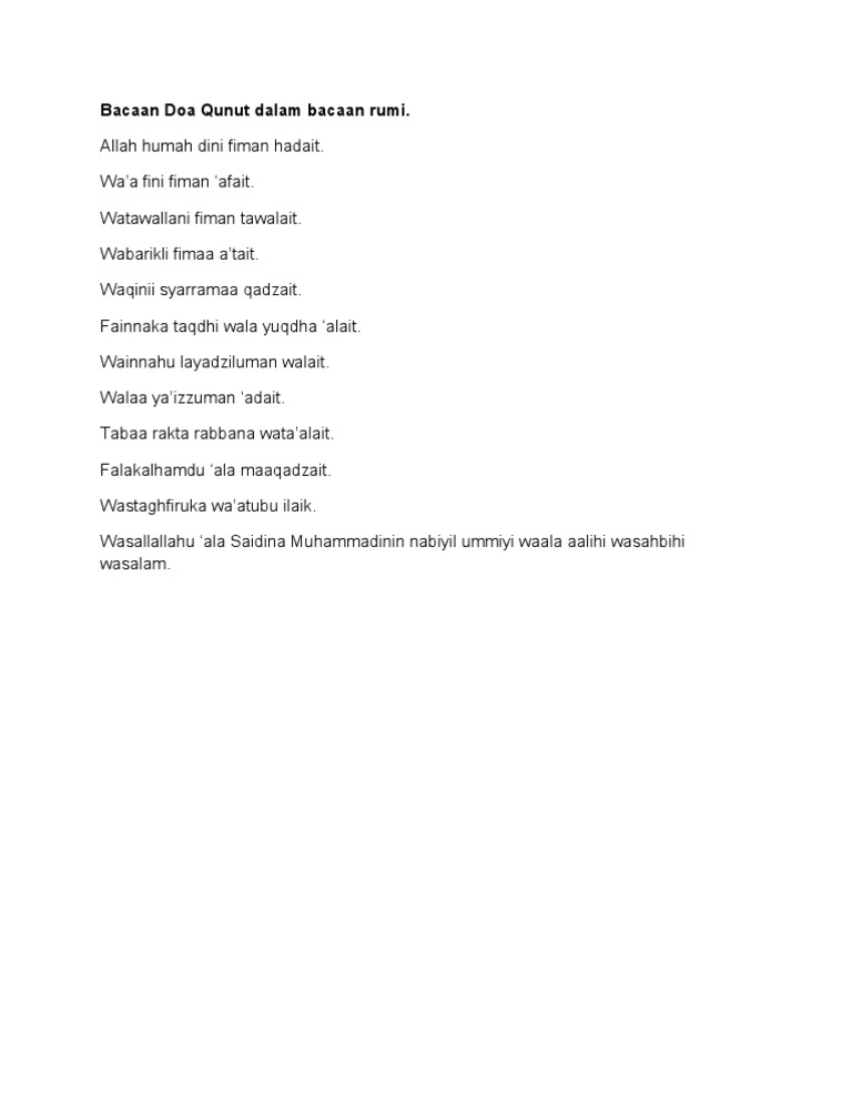 Bacaan dalam rumi bahasa melayu : Semoga dalam lindungan alloh swt dan rahmat alloh, sehingga kita dapat belajar bersama diblog dan dzikir ini. Tetapi anda boleh juga merujuk audio bacaan qunut untuk mendapatkan cara bacaan yang betul. Lalu untuk doa qunut selepas sholat subuh pada umumnya bacaannya lebih pendek. Dll semoga bermanfaat here we will show you how to download and install doa qunut rumi for pc running windows 7, windows 8.